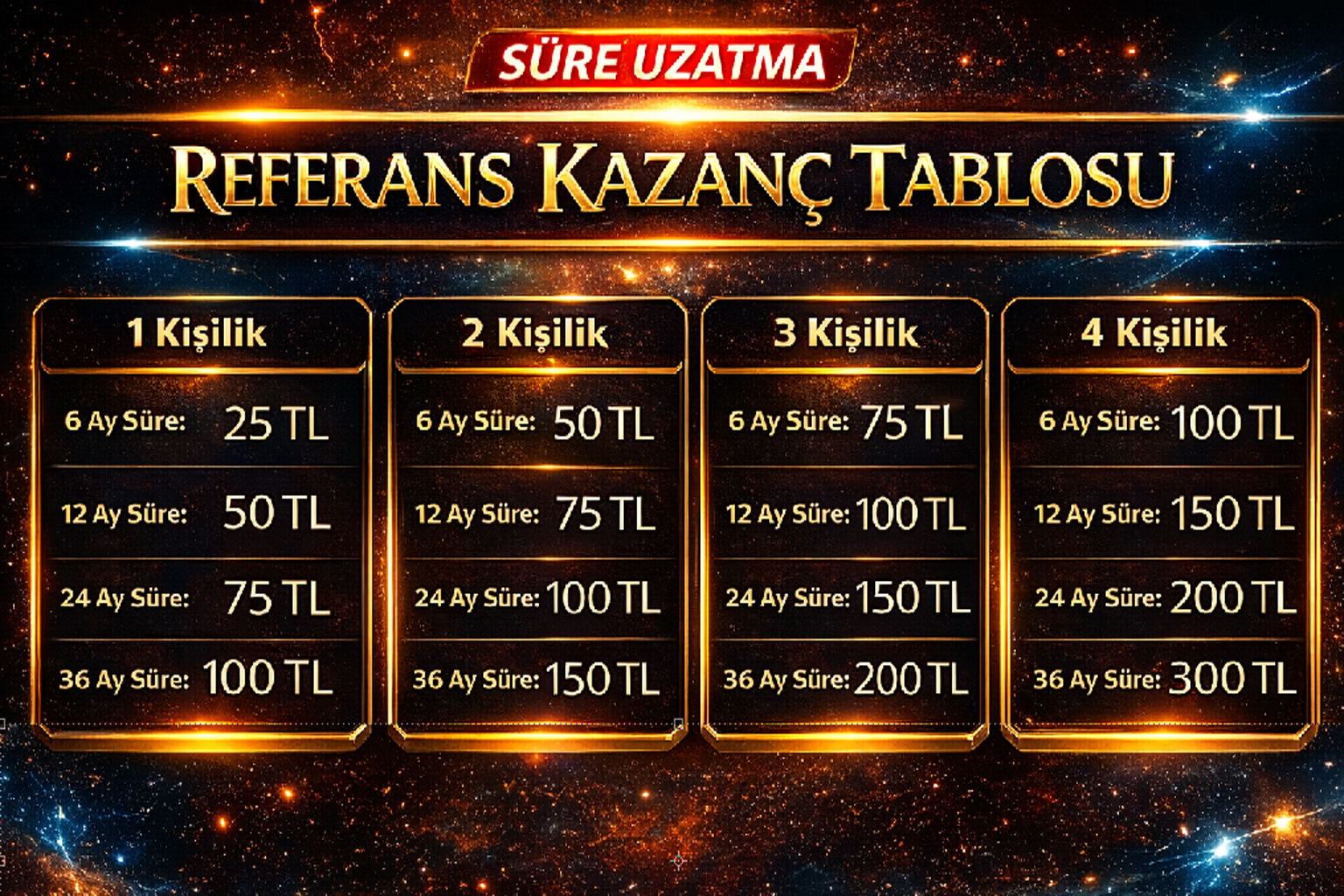 Referans olduğunuz kişinin yeni üyelik veya süre uzatma işleminde kazanacağınız tutarlar